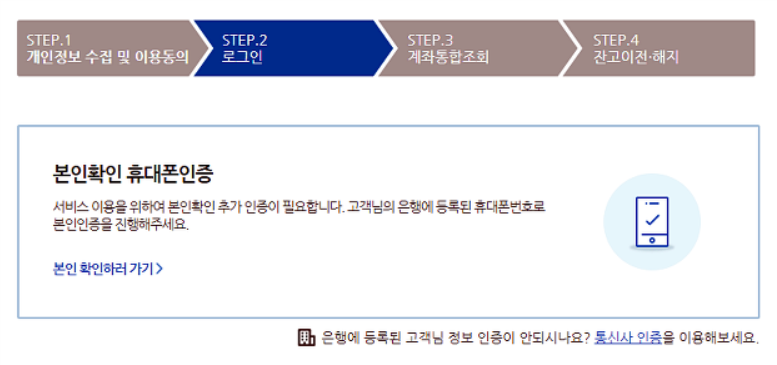 예전에는 은행 계좌에 대해서만 전체 통합 조회와 잔액 이전 및 해지만 가능했었습니다.