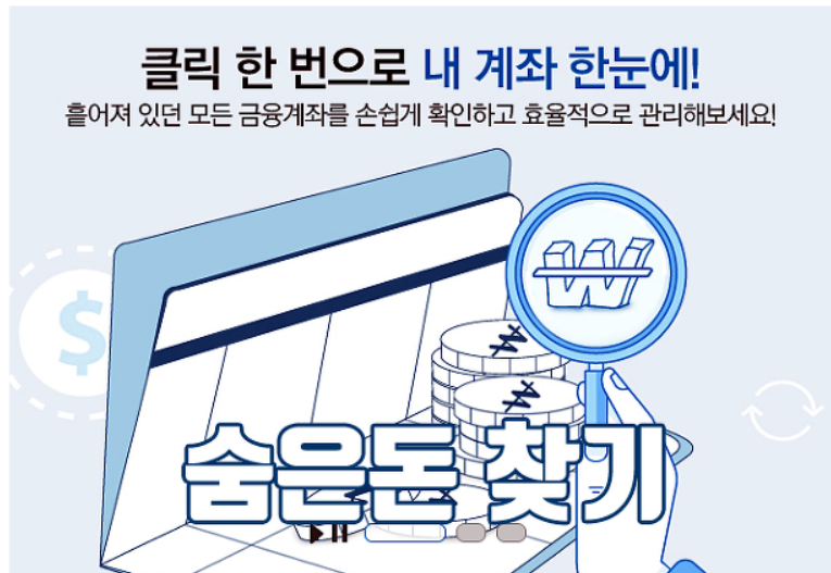 금융위원회는 '국민 체감형 금융거래 서비스 확대 방안'을 발표하였고, 제2금융권과 증권사에 숨어 있는 금융 자산(휴면계좌)을 고객이 쉽게 찾을 수 있는 '숨은 금융 자산 찾기 서비스'를 도입한다고 공표했습니다. (다른이름으로는 내계좌 숨은돈 찾기, 휴면계좌 잔액조회 입니다)